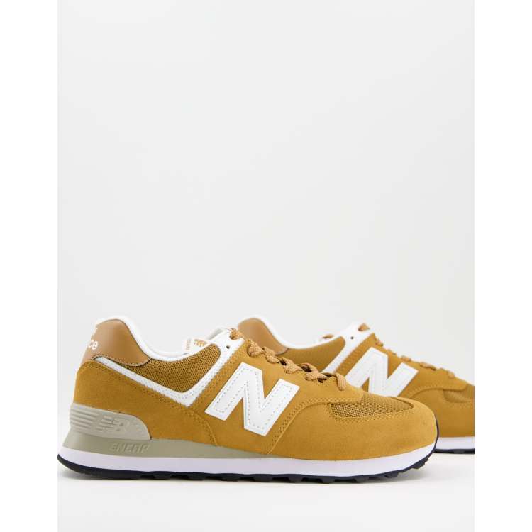 New Balance 574 sneakers in mustard yellow and white Very well made.