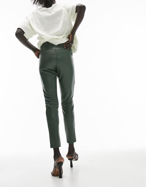 Topshop Petite faux leather skinny fit moto pants in khaki Very well made.