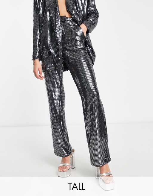 4th Reckless Tall exclusive sequin tailored pants in silver Very well made.