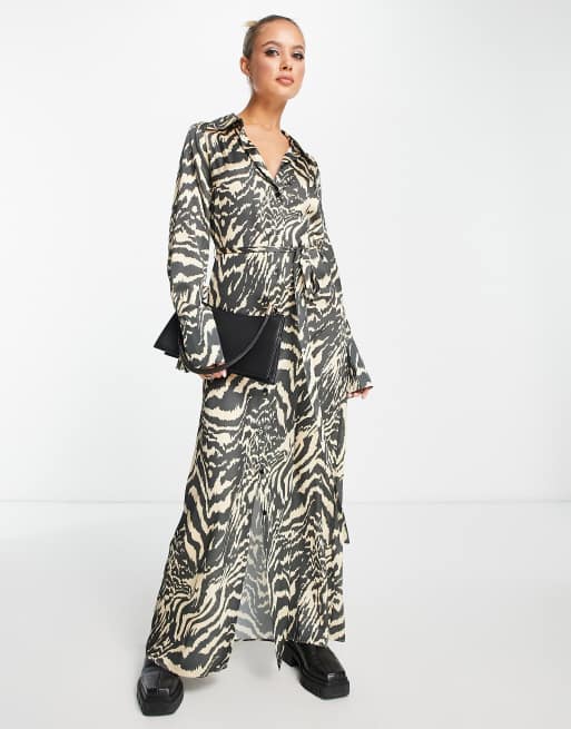 ASOS DESIGN satin maxi dress with tie belt in neutral zebra print Very well made.