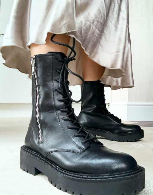 Chunky Sole Zip Up Biker Boots In Black Mixed Laces Very well made.