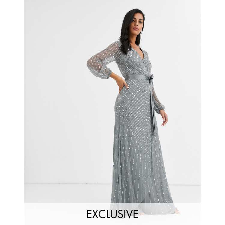 Amelia Rose bridesmaid embellished maxi dress with wrap detail in Very well made.
