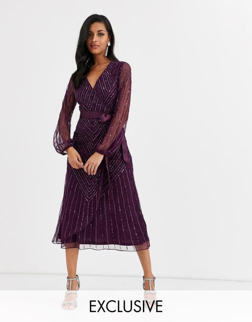 ASOS AMELIA ROSE SLEEVE BEAD SEQUIN EMBELLISHED MIDI DRESS HEN Very well made.
