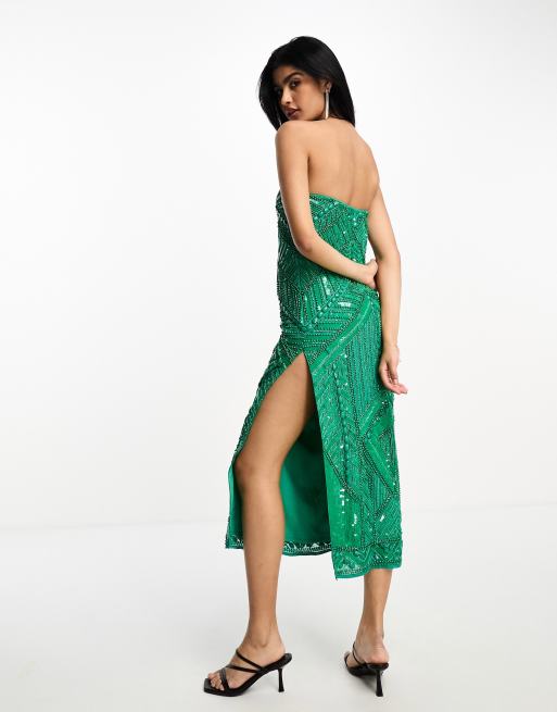 ASOS DESIGN embellished ergonomic bandeau midi dress in green Very well made.