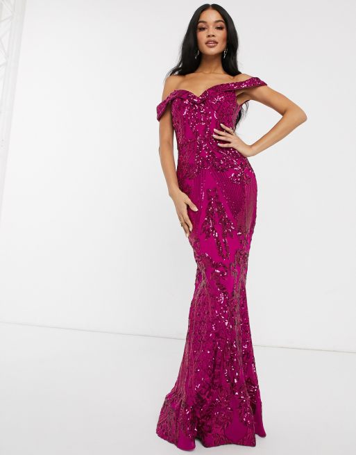 Bariano bardot neck maxi dress with sequin embellishment in Very well made.