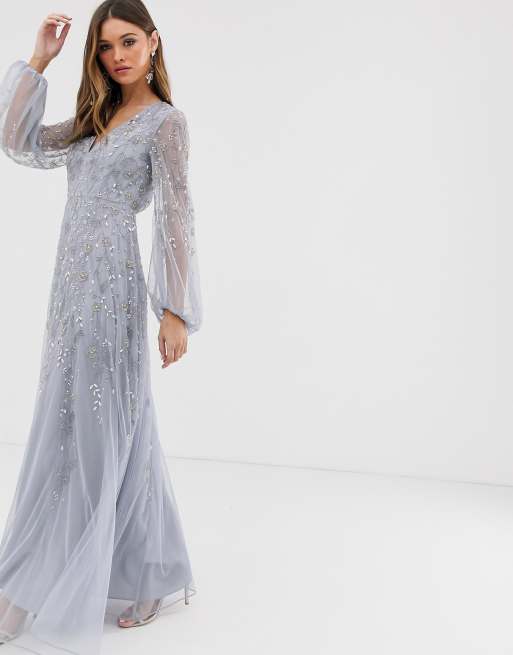 ASOS DESIGN Bridesmaid maxi dress with long sleeve in pearl and beaded embellishment with tulle skirt Very well made.