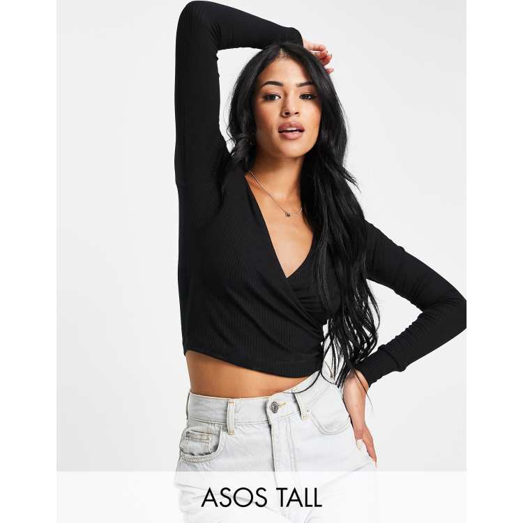 ASOS DESIGN Tall long sleeve wrap front crop top in black ASOS Very well made.