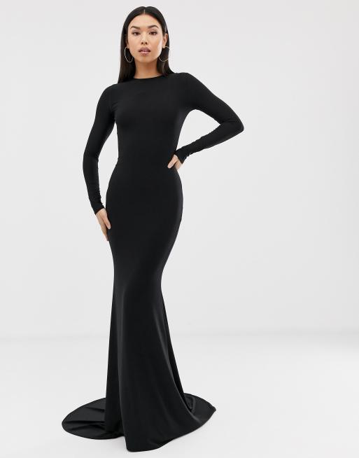 ASOS Long Sleeve Open Back Maxi Fishtail Dress in Black Lyst UK Very well made.