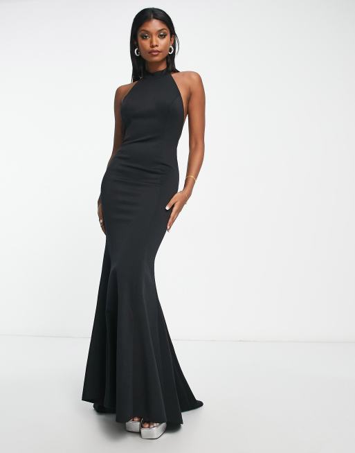 True Violet Black Label high neck fishtail maxi dress in black Very well made.