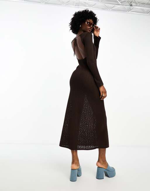 ASOS DESIGN sleeveless crochet high neck maxi dress in khaki Very well made.