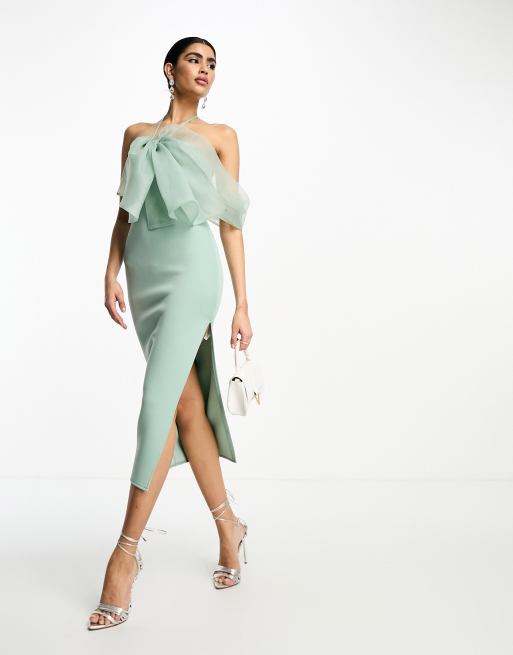 ASOS DESIGN halter organza bow detail midi dress in frosty sage Very well made.