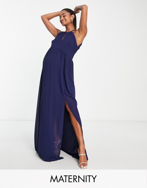 TFNC Maternity Bridesmaid strappy back halter neck dress in navy Very well made.