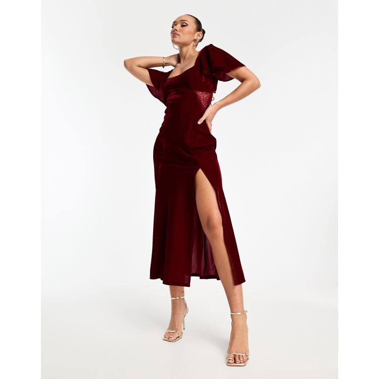 ASOS DESIGN velvet flutter sleeve midi dress with lace insert in red Very well made.