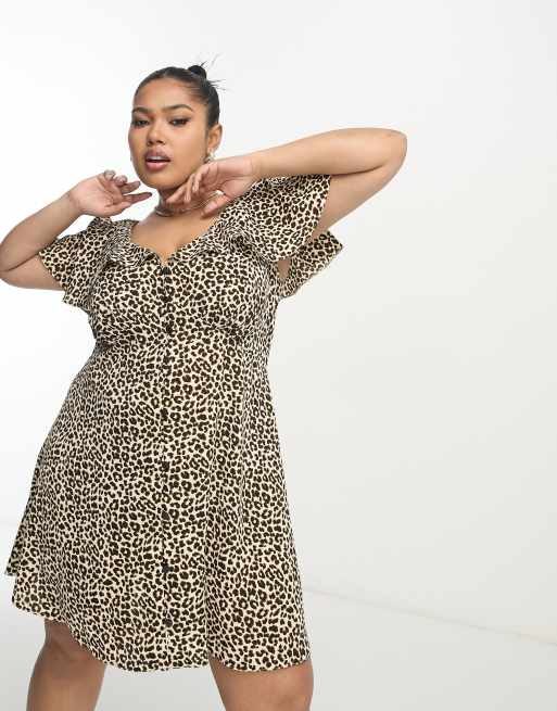 ASOS DESIGN Curve flutter sleeve mini tea dress with buttons in animal Very well made.