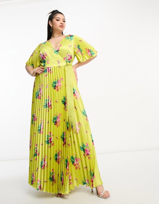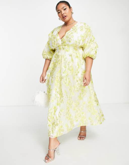 ASOS EDITION Curve pleat waist jacquard midi dress in yellow Very well made.