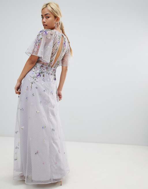 ASOS DESIGN floral embroidered dobby mesh flutter sleeve maxi Very well made.