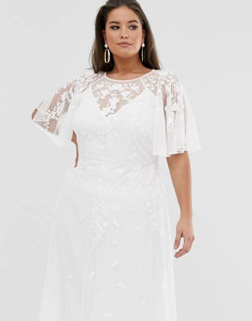 ASOS DESIGN Curve embroidered flutter sleeve maxi wedding dress WHITE Very well made.