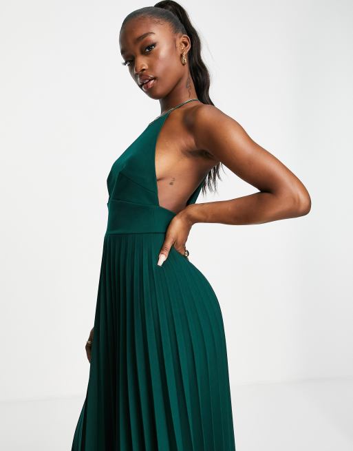 ASOS DESIGN bare shoulder prom scuba midi dress in forest green Very well made.