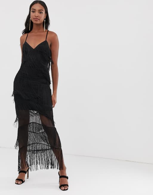 ASOS DESIGN fringe mesh strappy maxi bodycon dress Very well made.
