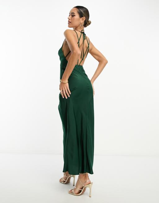 ASOS DESIGN halter cross strap maxi dress in dark green Very well made.