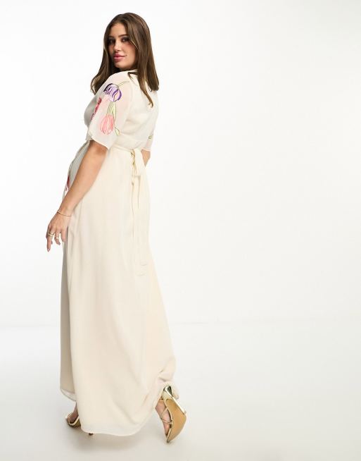 Hope Ivy Maternity Bridal embroidered plunge maxi dress in ivory Very well made.