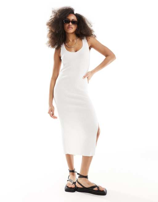 ASOS DESIGN knitted v neck midi dress in cream ASOS Very well made.