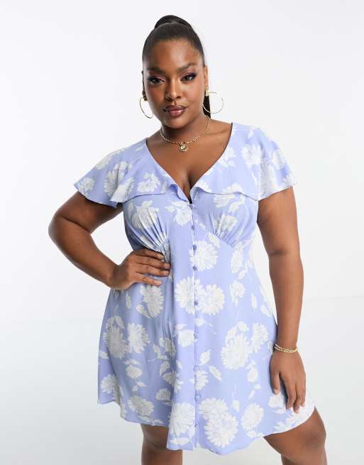 ASOS DESIGN Curve flutter sleeve mini dress with buttons in lilac floral Very well made.
