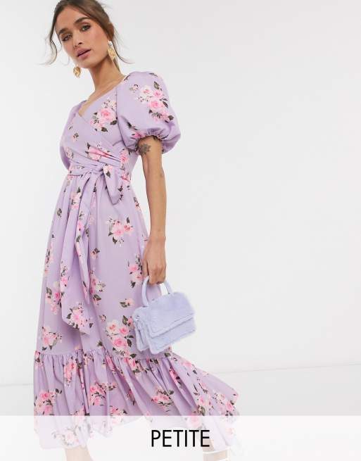 John Zack Petite exclusive puff sleeve wrap midi dress with ruffle Very well made.
