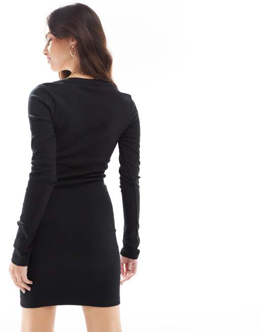 ASOS DESIGN ribbed long sleeve scoop neck mini dress in black Very well made.