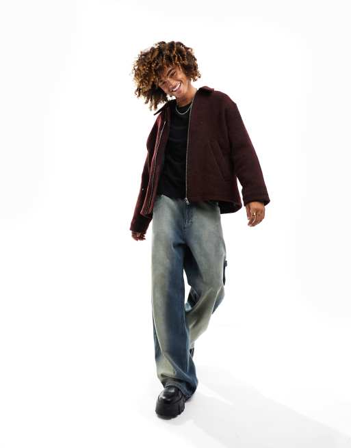 Weekday Martin wool structured zip through jacket in dark red Very well made.