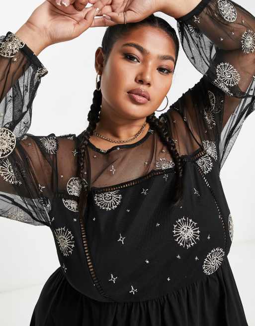 ASOS DESIGN Curve long sleeve mesh mini dress with ladder trim and Very well made.
