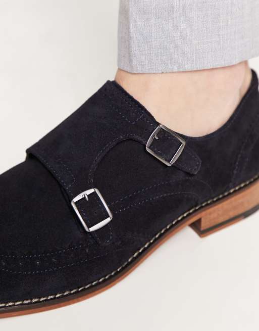 ASOS DESIGN double strap monk shoe in navy suede Very well made.