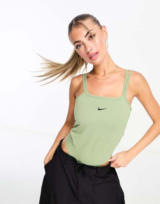 Nike mini swoosh cami bodysuit in oil green Very well made.
