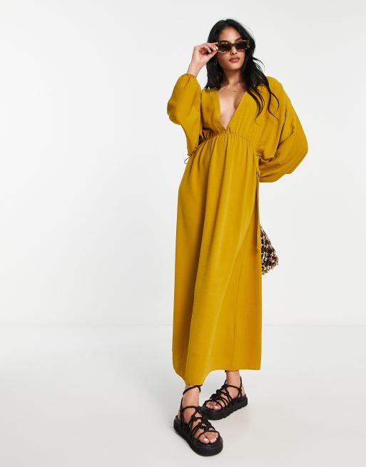 ASOS DESIGN batwing sleeve elastic waist maxi dress in ochre Very well made.