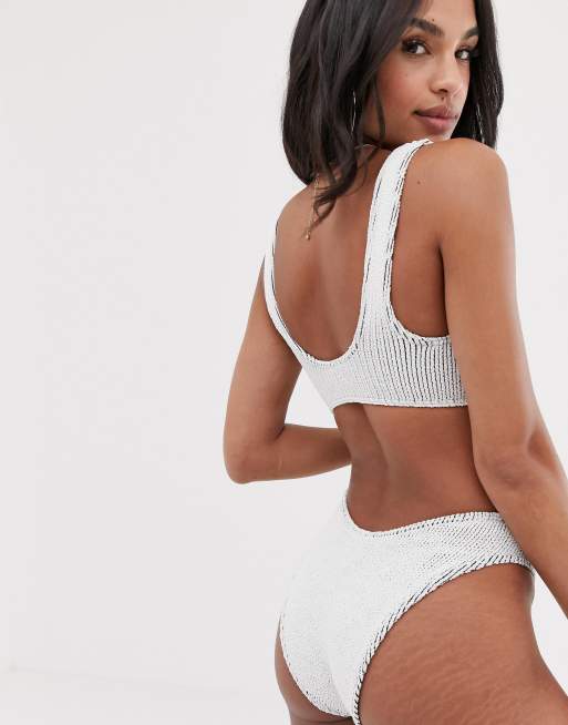 ASOS DESIGN mix and match crinkle high leg hipster bikini bottom in white black Very well made.