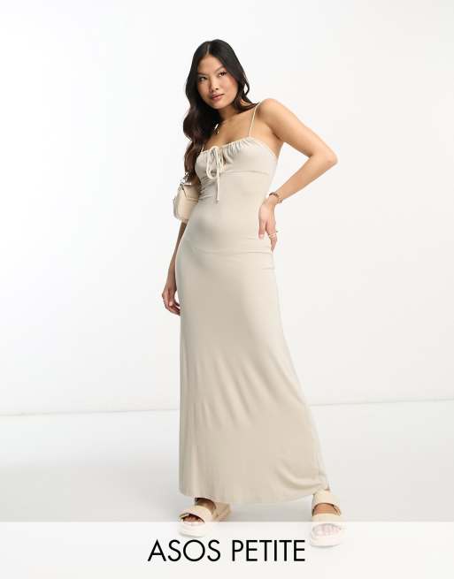 ASOS DESIGN Petite strappy ruched bust midi dress in stone Very well made.
