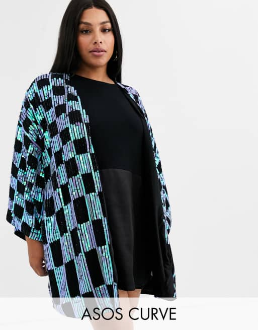 ASOS DESIGN Curve embellished checkerboard kimono Very well made.