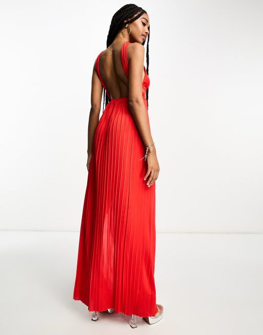 ASOS DESIGN Tall halter neck grecian pleated skirt maxi dress in red Very well made.