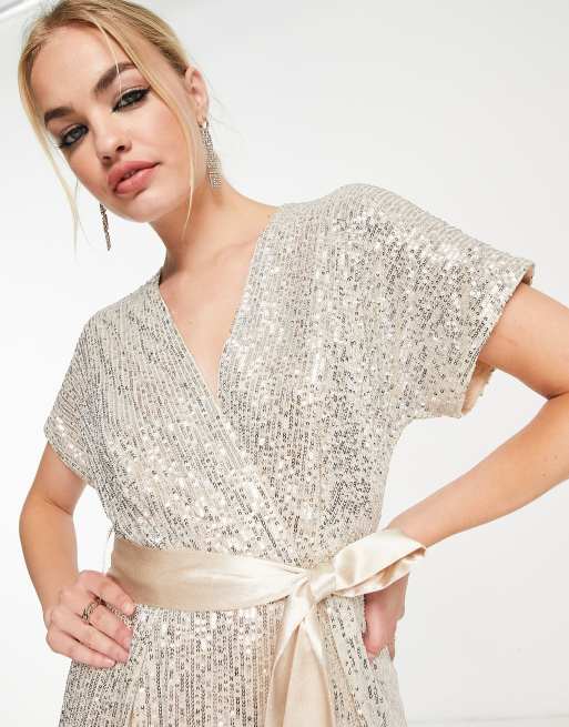 TFNC Plus sequin kimono sleeve maxi dress in silver ASOS Very well made.