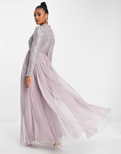 Beauut Bridesmaid embellished maxi dress in silver and pink Very well made.