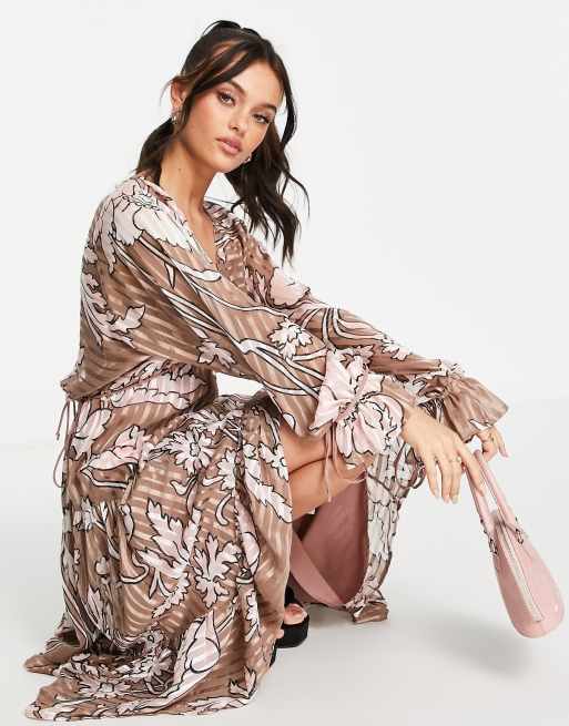 ASOS DESIGN satin stripe tiered midi dress in abstract floral Very well made.