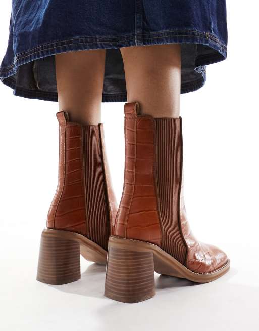 ASOS DESIGN Ratings leather chelsea boots in tan croc Very well made.