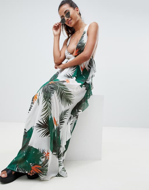 ASOS DESIGN tropical print frill back beach maxi dress Very well made.