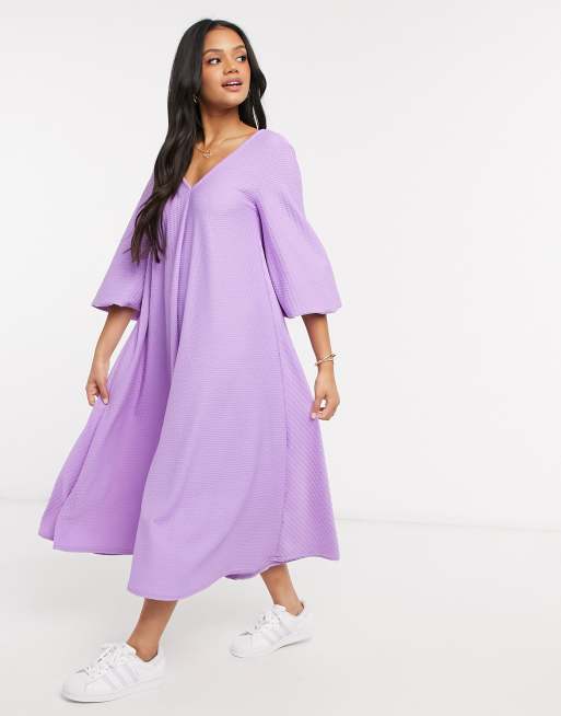 ASOS DESIGN textured smock midi dress with v neck in violet Very well made.