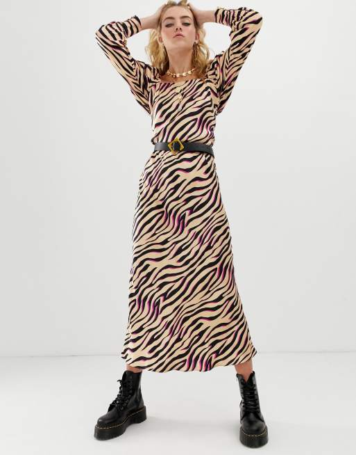 ASOS DESIGN bias cut maxi dress in zebra print with long sleeves Very well made.