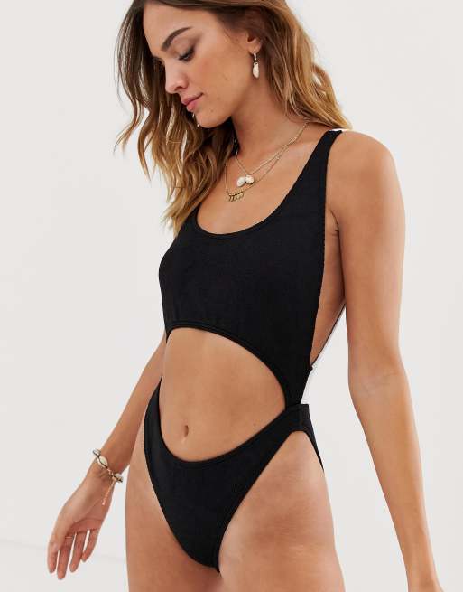 Dixperfect Women s Retro 80s 90s Inspired High Cut Low Back One Piece Swimwear Bathing Suits Very well made.