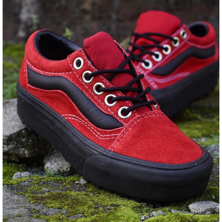 Vans Old Skool LUG Platform 90s Retro Red Black ORIGINAL Very well made.