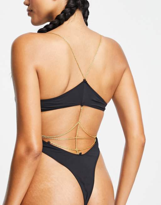 Cosmogonie Exclusive plunge bodysuit with gold chain strappy back Very well made.