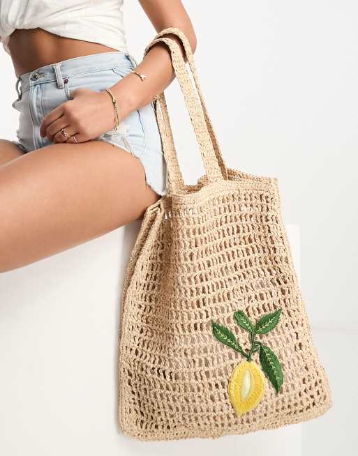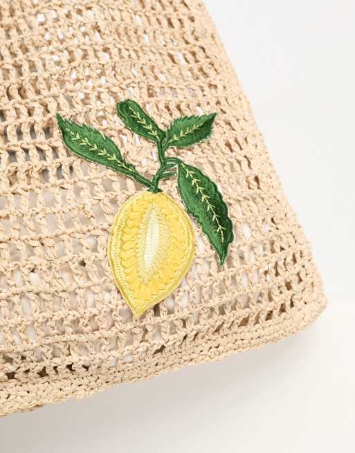 Accessorize straw tote bag with embroidered lemon in beige Very well made.