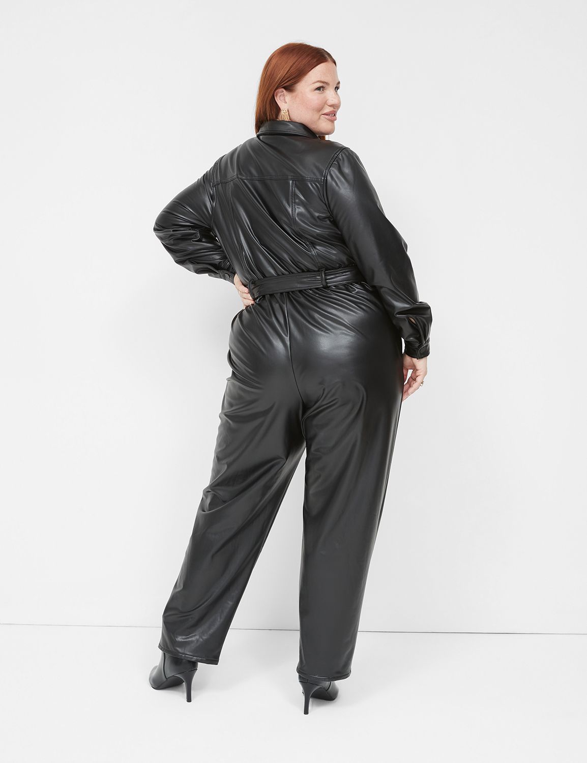 Faux Leather Jumpsuit in Black Very well made.